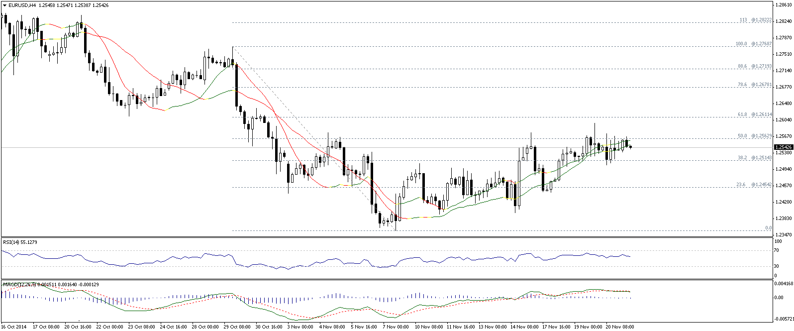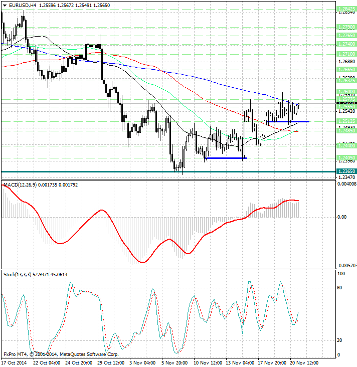 Курс валюты расположен выше скользящих средних с периодами 34, 55 и 89, которые являются уровнями поддержки 1.2510 и 1.24875/85, и в данный момент пытается закрепиться выше средней с периодом 144.
