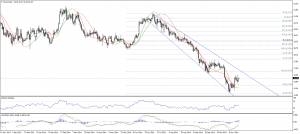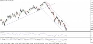 Пара по прежнему торгуется ниже уровня сопротивления 1,5705 сохраняя отрицательное давление в силе. Линии Линейной регрессии так же по прежнему показывают отрицательную динамику, что указывает на возможэность нисходящего движения с целью 1,5500 и возможно 1,5430. Имейте ввиду, что прорыв уровня 1,5705 отменит медвежий сценарий.