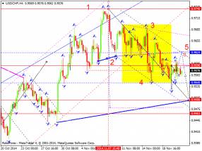 Валютная пара доллар франк продолжает торговаться в коррекции. Рассматриваем её как четвёртую волну на восстановление к уровню 0.9600. Далее ожидаем развитие пятой структуры снижения на отработку цели на уровне 0.9500.