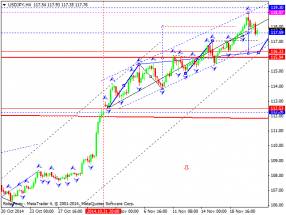 После тестирования уровня сопротивления 119,0 пара снизилась достигнув области поддержки 117,85. Однако, пока цены выше уровня 116,10 мы по прежнему придерживаемся бычьего сценария и ждем возвращения к области 119,00 и ее пробоя.
