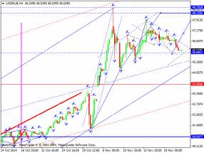 Российский рубль восхищает стабильностью на этой неделе. Утром в пятницу за доллар США дают 45,88 руб., продолжается техническая коррекция и консолидация в диапазоне. В целом коррекционные планы уже выполнены, сегодняшние торги для рубля пройдут в том же позитивном ключе, но далее всё более туманно. Очень многое будет зависеть от итогов встречи картеля ОПЕК, поддержки со стороны налогового периода на новой неделе будет меньше. Если есть планы покупать валюту для новогодних поездок за рубеж, стоить сделать это именно сейчас.