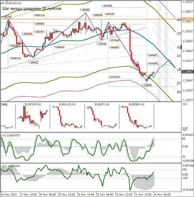 Техническая картина между основными парами противоречивая, тут либо EUR/USD вернётся обратно, и коррекция по доллару продолжится, либо USD/CAD и AUD/USD развернутся. На понедельник по основному сценарию рассматриваю восстановление евро до линии lb.