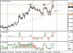 За четверг и пятницу стоимость барреля нефти сорта Brent поднялась с минимума 77,57 до 80,49 долл. за баррель. Мировые цены на нефть выросли на ожиданиях инвесторов, что ОПЕК в конце ноября снизит добычу нефти. Если цена на нефть продолжит восстанавливаться, позиции кроны укрепятся.