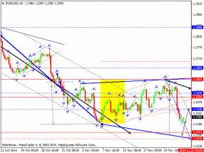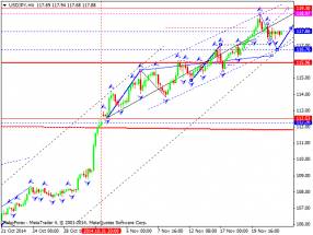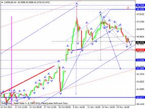 Здесь, мы следим за формированием потенциала для нисходящего движения от 20 ноября. Краткосрочное движение к низу, ожидаем в коридоре 145.51 – 144.85, пробой последнего значения должен сопровождаться выраженным движением к низу, здесь цель – 143.57, в коридоре 143.57 – 143.00 консолидация цены. Краткосрочное восходящее движение, возможно в коридоре 146.39 – 146.94, пробой последнего значения приведет к углубленному движению, здесь цель – 147.85, этот уровень является ключевой поддержкой для нисходящей структуры от 20 ноября. Основная тенденция – формирование потенциала для низа от 20 ноября.