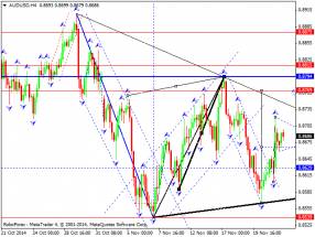 Торговать сейчас лонг является весьма опасным занятием. На это есть несколько причин. Первая – это верхняя граница нисходящего канала зеленого цвета R3, которая может ограничить восстановление AUDUSD без какой либо коррекции вниз. Вторая – это область 0.8701, которая также может играть очень важную роль в среднесрочной коррекции пары. Лучше всего искать лонг после коррекции вниз австралийца к нижней границе 0.8621, либо после пробоя и закрепления выше вышеуказанных областей, что автоматически приведет к сработке многих стоп – приказов шортов и подъему AUDUSD к 0.8762. Стоп приказы по лонг позициям в таких сделках лучше расставлять ниже 0.8651, либо под поддержку 0.8621.