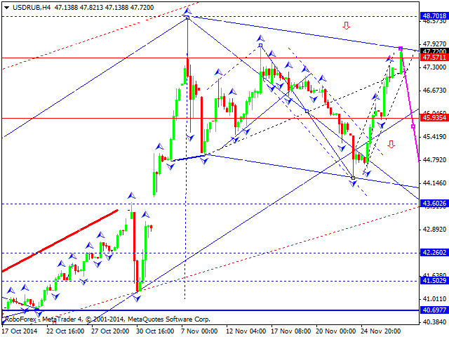 Если так, то российский рубль, открывший сессию очередной фазой падения, протестирует сегодня новые минимумы в парах с долларом США и евровалютой. Сейчас на рынке за доллар дают 47,65 руб. Всё, что будет обнародовано в заявлении картеля ОПЕК, тут же отразится на рублёвых котировках с поправкой на эмоции. Предположительно, курс доллара способен очень быстро дойти и до 49 рублей, если новости разочаруют.