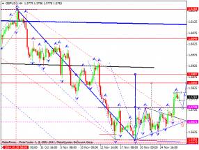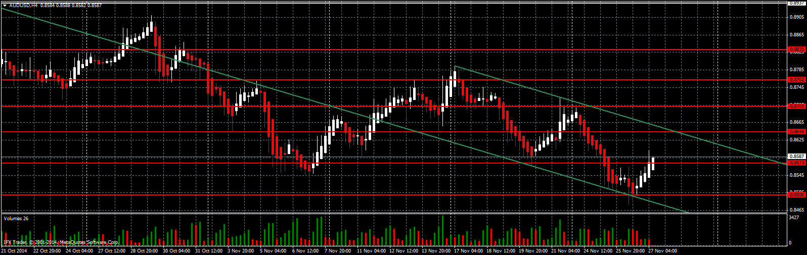 Лонгам сейчас нужно быть внимательными и особенно сосредоточенными на сегодняшнем решении ОПЕК по объемам добычи нефти, которое может оказать, как негативное, так и положительно давление на пару. Если быки сумеют закрепиться выше 0.8573, что пытаются сейчас сделать, то вероятней всего рост AUDUSD продолжится к сильному сопротивлению 0.8644, чуть выше которого расположена верхняя граница нисходящего канала зеленого цвета R1. Именно от этих уровней начнется первое закрытие длинных позиций и фиксация прибыли. Стоп приказы по таким сделкам лучше всего расставлять под 0.8530, так как движение ниже может привести к новой сильной волне продаж.