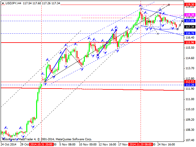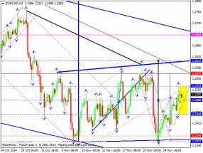 Шортам также нужно быть предельно внимательными. Решение ОПЕК может обвалить котировки AUDUSD уже к новым годовым минимумам. Поэтому если закрепления выше 0.8573 не будет, а пробой окажется ложным, то лучше всего входить в короткие позиции с первой целью возврата к 0.8500, а затем на обновление минимумов и очередной тест нижней границы нисходящего канала зелёного цвета R2. Стоп приказы по таким сделкам необходимо выставлять чуть выше максимумов сегодняшнего дня, так как если в рынке вновь появятся покупатели, то мы увидим более сильную волну роста AUDUSD. Появление объема в случае снижения под 0.8573, также будет дополнительным сигналом к шорту.