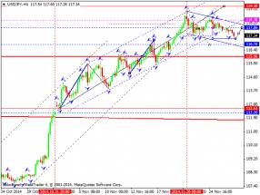 Поэтому предпочтительнее покупать доллар на последующем падении. Пробой зоны 116,80-85 вниз может вызвать падение до 116,50-55. Тем не менее из-за состояния перепроданности рынка резкого движения ниже указанной зоны не ожидается. Поддержка 116,34 должна устоять, после чего возможен очередной виток роста.
