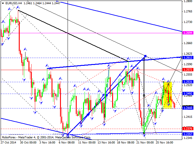 Здесь, мы продолжаем следить за развитием локальной нисходящей структуры от 17 ноября. Продолжения движения к низу, ожидаем после пробоя 0.8479, в данном случае цель – 0.8427, в коридоре 0.8427 – 0.8391 консолидация цены.