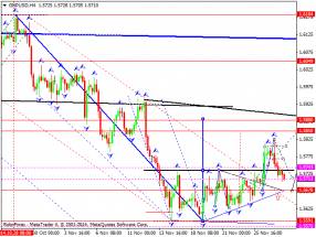 Здесь, мы продолжаем следить за формированием потенциала для нисходящего движения от 20 ноября. Краткосрочное движение к низу, ожидаем в коридоре 145.51 – 144.85, пробой последнего значения должен сопровождаться выраженным движением к низу, здесь цель – 143.57, в коридоре 143.57 – 143.00 консолидация цены.