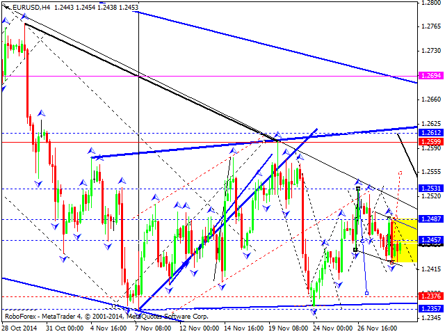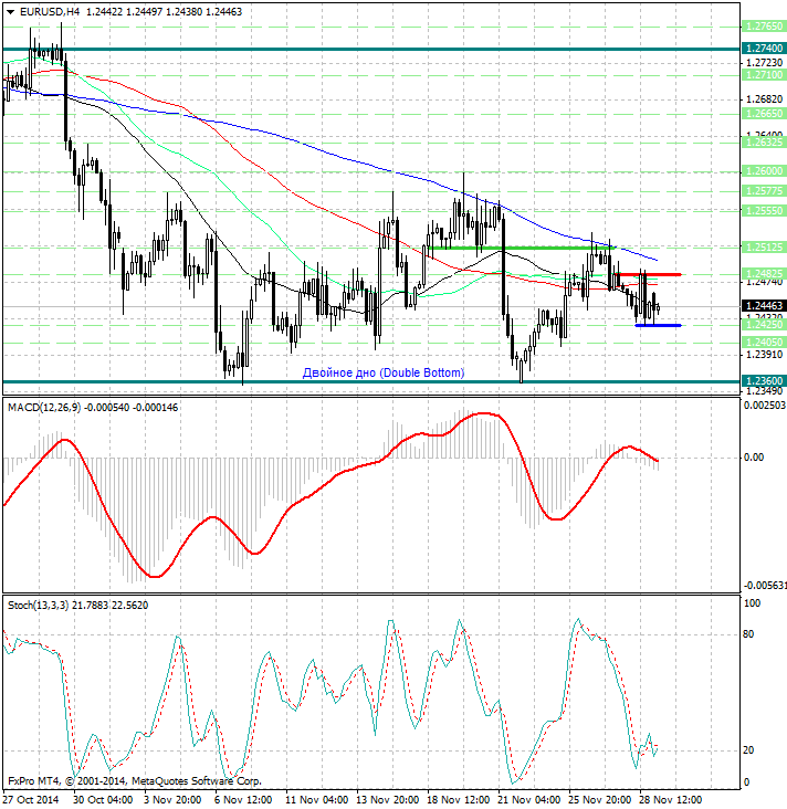 Обратив внимание на 4х часовой график можно заметить, что с прошлой пятницы торги не выходят за рамки узкого ценового диапазона 1.2425 - 1.24825.