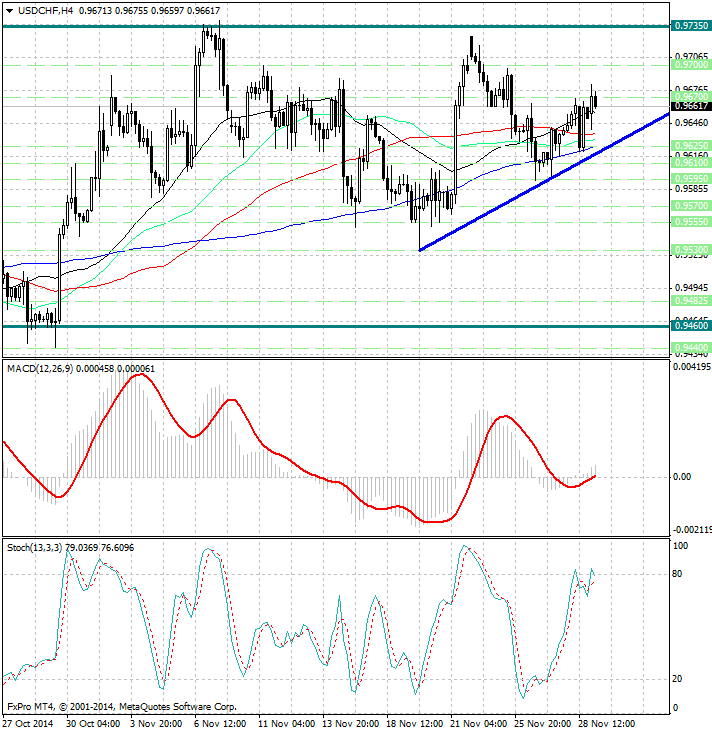 Курс валюты закрепился выше скользящих средних с периодами 34, 89, 55 и 144, которые теперь являются рядом уровней поддержки 0.9655, 0.96375/325 и 0.9625.