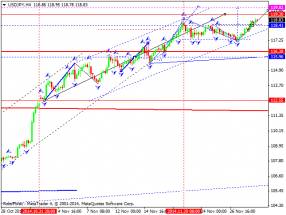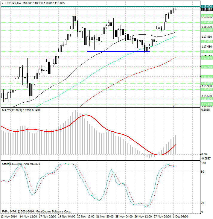 с европейской сессии прошлого четверга в данной валютной паре доминируют бычьи настроения, в тоже время, рост USD/JPY замедлился возле уровня 119.00 (область 7.5-летних max)...