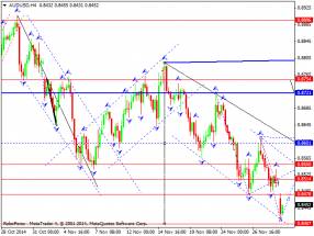 Торговать лонг сегодня будет не совсем правильной мыслью. Для реального покупателя нужно дождаться пока пара успокоится и нарисует, как минимум, «двойное дно», которое будет свидетельствовать о завершении текущего нисходящего тренда, который из-за слабых позиций нефти, только лишь набирает свою силу. Дополнительным отказом от лонга является пробой нижней границы нисходящего канала зеленого цвета R2, который может привести к еще большему падению AUDUSD в краткосрочной перспективе. Брать лонг можно будет только на отскок и коррекцию пары от сильной поддержки 0.8372, к которой она сейчас стремится.