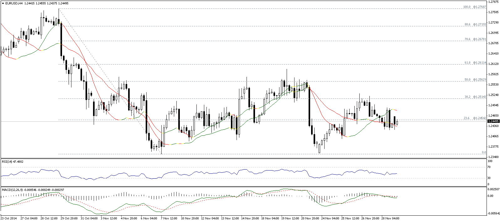 Пара евро/доллар торгуется в узком коридоре 1,24-1,256. Во второй половине недели выйдет значительное количество данных по европейской и американской экономикам, которые повлияют на динамику пары.