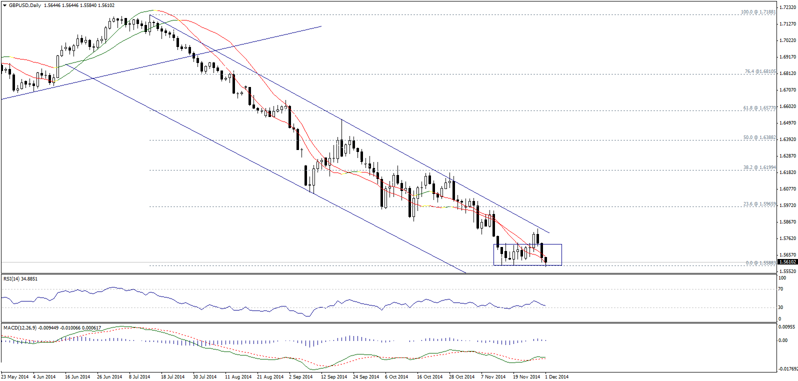 Внутридневной пробой предыдущей поддержки 1,5590 подтверждает наши предположения о завершении коррекции на отметке 1,5826 и о возобновлении недавней нисходящей волны. Пара, вероятно, направится к 1,5550-60. Тем не менее на фоне краткосрочного состояния перепроданности рынка резкого движения заметно ниже 1,5530-35 не ожидается. Затем возможен рост.