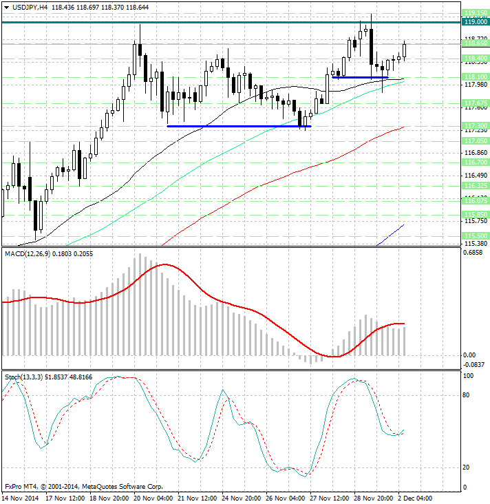 курс валюты нашел ощутимую поддержку возле уровня 118.10, с американской сессии понедельника в данной валютной паре доминируют бычьи настроения...