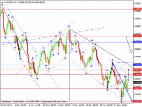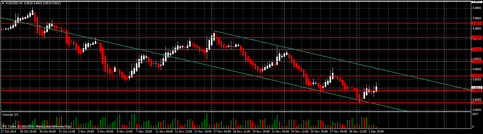 Торговать шорт можно начинать уже прямо сейчас. Коррекция по AUDUSD была достаточно неубедительна и в любое время в рынке могут появиться крупные продавцы, способные продавить пару к новым годовым минимумам. Шорт сделки удобней всего будет делать от сильного сопротивления 0.8573, а также от верхней границы нисходящего канала зеленого цвета R1. Стоп приказы по таким ордерам лучше всего расставлять за эти уровни на 7-10 пунктов выше. Ожидать падения AUDUSD можно к поддержке 0.8440, а также к нижней границе нисходящего канала зеленого цвета R2.