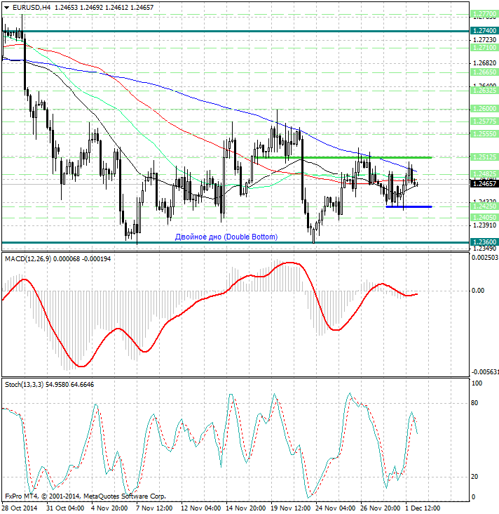 с одной стороны курс валюты встречает существенное сопротивление при подходе к уровню 1.25125, с другой - находит ощутимую поддержку возле уровня 1.2425...