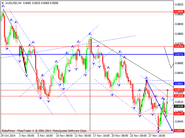 Валютная пара австралийский доллар к доллару США продолжает развитие третьего импульса роста. На сегодня рассматриваем возможность отработки уровня 0.8575. Далее ожидаем коррекцию к уровню 0.8477. Таким образом получим рамки границ нового консолидационного диапазона. С пробоем вниз рассмотрим возможность обновления минимума. С пробоем вверх - отработку уровня 0.8700.