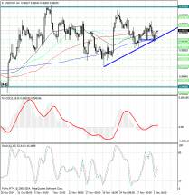 Курс валюты расположен ниже скользящих средних с периодами 89, 55 и 144, которые являются уровнями сопротивления 1.24725 и 1.24875, и в данный момент практически слился со средней с периодом 34.