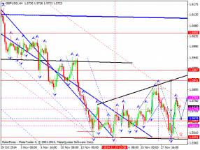 Торговать шорт я не советую, так как покупатели вчера явно дали понять, что рынок меняет свою тенденцию, а зависнуть в шортах у минимумов года не очень хочется. Так что первые продажи я советую смотреть от 1.5798, где будет первая фиксация прибыли по длинным позициям, а также чуть выше максимума 27 ноября 1.5850. Но лучше всего дождаться шорта от уровня 1.5887, где наверняка мы с вами увидим появление пикового объема и вход новых крупных шортов с целью продолжения среднесрочной нисходящей тенденции по паре. Основной целью на текущую неделю у медведей является возврат к минимумам года в район 1.5592.