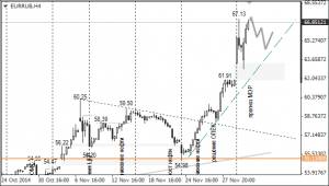 С середины ноября британский фунт находится в коррекционной фазе. Он демонстрирует разнонаправленную динамику в связи с выходом смешанных данных по Европе, Братании и США. Учитывая тот факт, что в коррекционной фазе волны перекрывают друг друга на 60-100%, то рискну предположить, что перед заседанием Банка Англии, которое запланировано на четверг (15:00 мск), пара фунт/доллар восстановится до 1,5704.