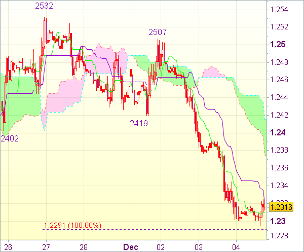 Начнем с того, что наш вчерашний форекс прогноз подтвердился - пробой уровня поддержки 1.2360 привел к очередному усилению медвежьих настроений и наша первая цель 1.2310/00 была достигнута в ходе европейской сессии...