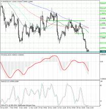 Курс валюты расположен значительно ниже скользящих средних с периодами 34, 55, 89 и 144, которые направлены вниз и указывают на сохраняющиеся медвежьи настроения, а также являются рядом уровней сопротивления 1.2430 и 1.2460/65.