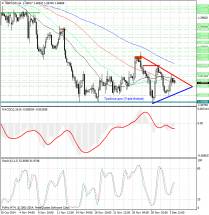 Обратив внимание на 4х часовой график можно заметить, что на нем 'вырисовался' симметричный треугольник, за рамки которого не выходят торги...
