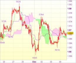 Что касается падения, после пробоя отметки 1,5662 (нижнее Кумо) пара может протестировать поддержку 1,5619. В случае пробоя можно рассчитывать на продолжение нисходящей волны вплоть до поддержки 1,5585. Тем не менее лишь прорыв данной отметки станет свидетельством возобновления недавнего падения и, скорее всего, направит фунт к 1,5550-55. Однако из-за потери импульса заметного движения ниже 1,5520-25 не произойдет. Ввиду неопределенности краткосрочных прогнозов пока предпочтительнее оставаться вне рынка.