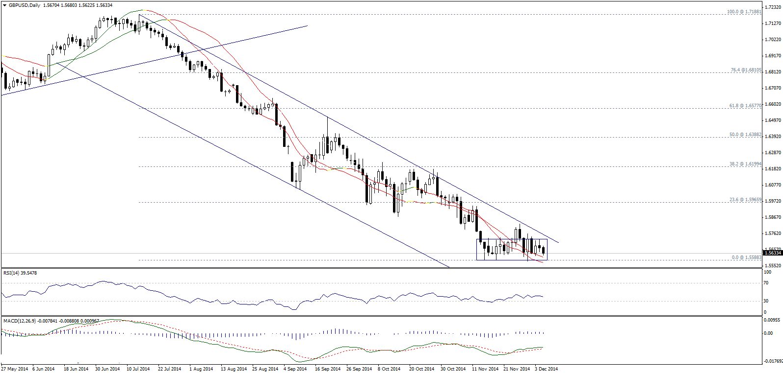 Пара демонстрирует небольшое нисходящее движение постепенно приближаясь к уровню поддержки 1,5585, пробой которой будет означать начало новой медвежьей волны. Этот сценарий поддерживают линии Линейной регрессии и торговля в рамках нисходящего канала.