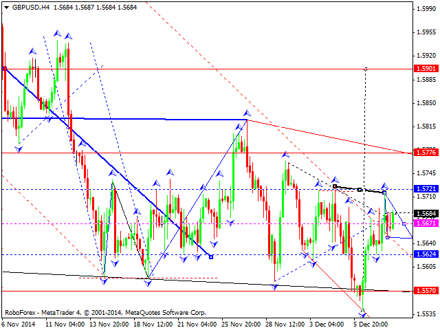 У продавцов также есть реальный шанс открыть очень хорошие короткие позиции, однако и имеется достаточный риск получить стоп приказы. Пока до конца не понятно, кто вчера был в объеме после теста 1.5711. Если это шорты, то они не позволят сегодня паре выбраться выше 1.5711, в связи с чем, я советую продавать именно оттуда, либо прямо сейчас. Стоп приказы по таким сделкам необходимо выставлять выше уровня 1.5738 на 7-10 пунктов, чтобы избежать сноса стоп приказов после ложного пробоя вверх. Целю медведей будет возврат в диапазон нисходящего канала фиолетового цвета R1-R2, а также тест хорошей поддержки 1.5592, где будет заметна первая фиксация прибыли по коротким позициям.