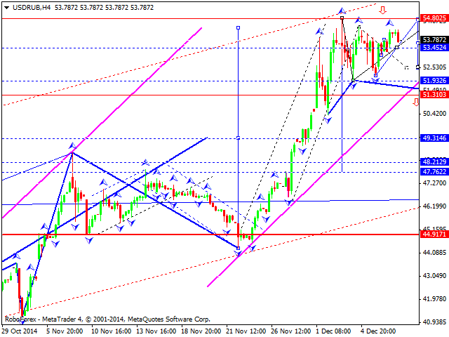 Внешний фон к сегодняшнему дню сложился неоднородным. «Быки» продолжали толкать американские индексы к локальным пикам, фьючерс на индекс S&P едва заметно дорожает. Цены на нефть падают, несмотря на попытку скорректироваться накануне вечером. Российский рубль скользит в русле девальвации, хотя объёмы торгов по рублю сегодня сокращаются: впереди декабрьское заседание ЦБ РФ, и сейчас никто точно не скажет, чем оно завершится. За доллар США сейчас дают 54,16 руб., укрепление по сравнению со вчерашним днём небольшое. Евро также дорожает.