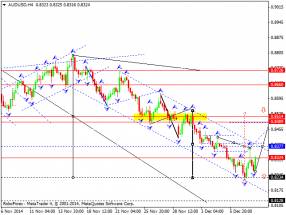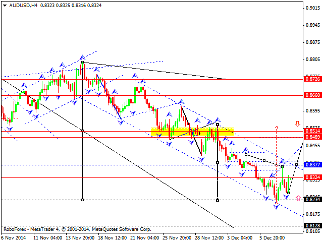 Валютная пара австралийский доллар к доллару США отработала импульс роста и его коррекцию. На сегодня рассмотрим возможность развития ещё одной структуры на восстановление цены к уровню 0.8489. Далее - опять снижение к уровню 0.8324.