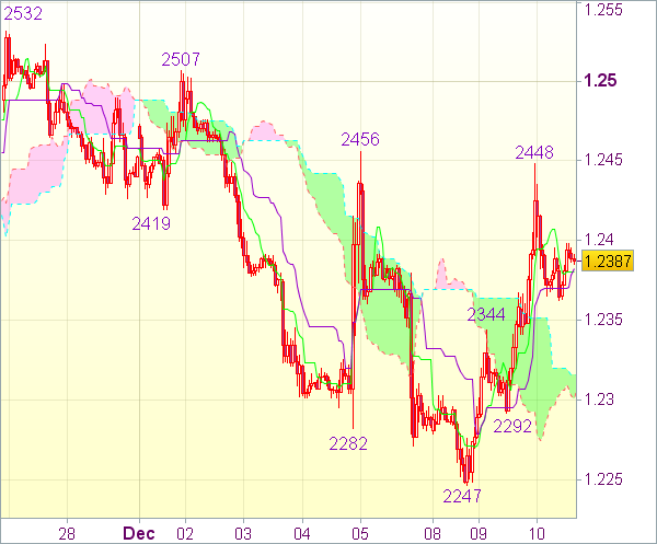Поэтому рекомендуется держать длинные позиции от 1,2365. Лишь пробой предыдущего сопротивления 1,2344 укажет на образование максимума и, возможно, вызовет падение до 1,2320. Однако поддержка 1,2292 должна ограничить волну вниз. Затем может начаться очередной скачок вверх.