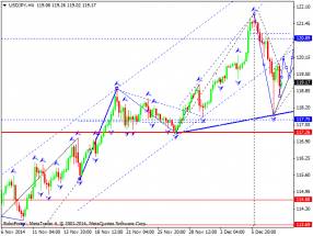 Валютная пара доллар иена отработала достаточно мощный импульс на снижение. На сегодня рассматриваем развитие коррекции к уровню 120.89. Далее будем рассматривать развитие второго импульса на снижение с пробоем уровня 117.75. Локальная цель - на уровне 114.66.
