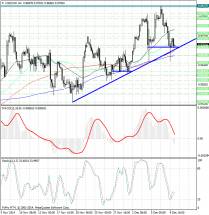 В связи с этим предпочтительнее держать длинные позиции от 1,2365. Лишь пробой предыдущего сопротивления 1,2344 станет признаком образования максимума. Затем пара может направиться к 1,2320. Тем не менее движение вниз должно ограничиться поддержкой 1,2292. Далее возможен очередной виток роста.