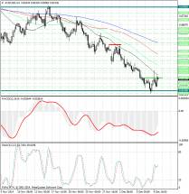 Курс валюты по-прежнему расположен существенно ниже скользящих средних с периодами 34, 55, 89 и 144, которые направлены вниз и указывают на сохраняющиеся медвежьи настроения (в среднесрочной перспективе), а также являются рядом уровней сопротивления 0.83425, 0.84025, 0.84775 и 0.8555.