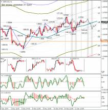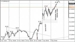 В четверг, 11 декабря, по итогам дня курс евро/доллар закрыл торги снижением. Евро быстро опустился с 1,2460 до 1,2369. Поскольку евро/доллар вернулся к 1,2369, можно считать, что пробой дневной трендовой линии ложный. Доллар укрепился на фоне сильной статистики из США.