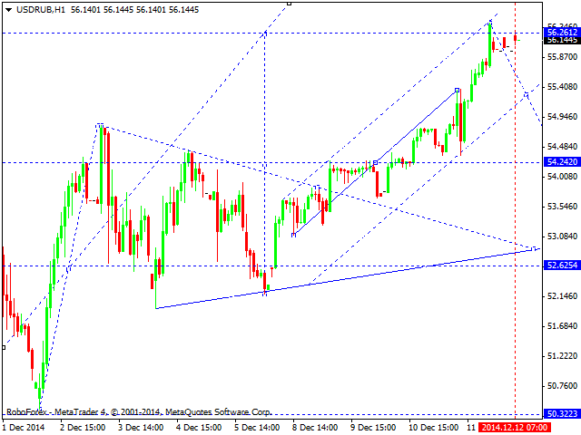 Российский рубль пробил консолидацию вверх и продолжает растяжение волны роста. На сегодня локальная цель перекрыта. На очереди - составляющая на снижение к уровню 54.24. Далее - опять рост на обновление максимума.
