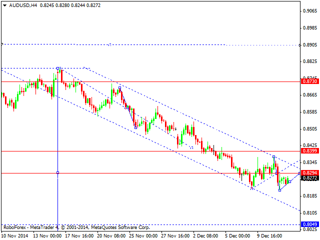 Здесь, от 11 декабря оформился небольшой потенциал для продолжения движения к низу. Краткосрочное нисходящее движение, ожидаем в коридоре 0.8234 – 0.8205, пробой последнего значения позволит рассчитывать на движение к потенциальной цели – 0.8151, по достижении которого, ожидаем откат к верху. Краткосрочное восходящее движение, возможно после пробоя 0.8323, здесь цель – 0.8377, проход ценой этого уровня будет располагать к развитию восходящего движения, в данном случае потенциальная цель – 0.8435. Основная тенденция – оформление локального потенциала для низа от 11 декабря.