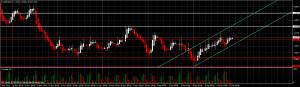 Сегодня лонги вырисовывают своеобразный флаг в пользу продолжения тенденции, которая сейчас является восходящей. Если в ближайшее время медведи не вернутся под 1.5711, то рост GBPUSD продолжится к уровню сопротивления 1.5798, чуть выше которого расположена и верхняя граница текущего восходящего канала зеленого цвета R1. Стоп приказы в таком случае оптимальней всего будет расставлять под 1.5711, а также под нижнюю границу восходящего канала R2, при коррекции к которой я также рекомендую открывать дополнительные лонги.