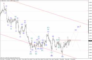 Таким образом, похоже на то, что валютная пара продолжает оставаться в стадии формирования волны (с), в составе волны (iv). При этом, скорее всего, волна (с) примет еще более сложную форму, возможно в виде диагонального треугольника.