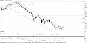 Пара продолжает двигаться вокруг уровня сопротивления бокового диапазона, в то время как RSI и MACD по прежнему нейтральные. Мы предпочитаем оставаться вне рынка идождаться пробоя либо уровня сопротивления 1,5730 либо уровня поддержки 1,5635. Пробой сопротивления отправит пару вверх с целью 1,5965, в то время как пробой поддержки приведет к активации медвежьего сценария с целью 1,5425.