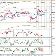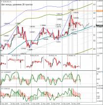 Чинкоу Спан находится выше графика цены, что является подтверждением текущего сигнала на покупку и означает «бычье» настроение валютных трейдеров по этой валютной паре. Боллинджер Бандс показывает продолжение восходящего движения, полосы расширяются и направлены вверх, поэтому сейчас на рынке актуальны длинные позиции.
