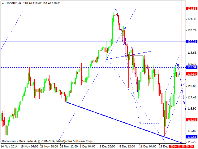 Краткосрочное нисходящее движение возможно в коридоре 118.17 – 117.68, пробой последнего значения приведет к углубленной коррекции, здесь цель – 116.88, этот уровень является ключевой поддержкой для восходящей структуры, его проход ценой будет располагать к развитию нисходящего движения. Основная тенденция – формирование потенциала для восходящего движения от 16 декабря.