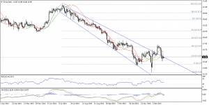 GBP/USD торгуется в середине бокового диапазона и для нисходящего сценария ей необходимо вновь закрепиться ниже уровня поддержки 1,5585. С другой стороны, пробой уровня сопротивления 1,5730 приведет к бычьему движению с целью 1,5965.
