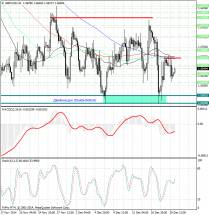 Краткосрочное восходящее движение, возможно в коридоре 1.2341 – 1.2381, этот коридор является ключевой поддержкой для нисходящей структуры, его проход ценой будет располагать к развитию восходящей структуры, в данном случае потенциальная цель – 1.2447. Основная тенденция – формирование нисходящей структуры от 16 декабря.